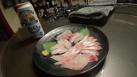 こんなおいしいお刺身を食べれるのは、釣り人の特権ですね!
