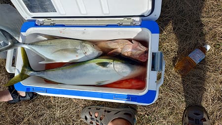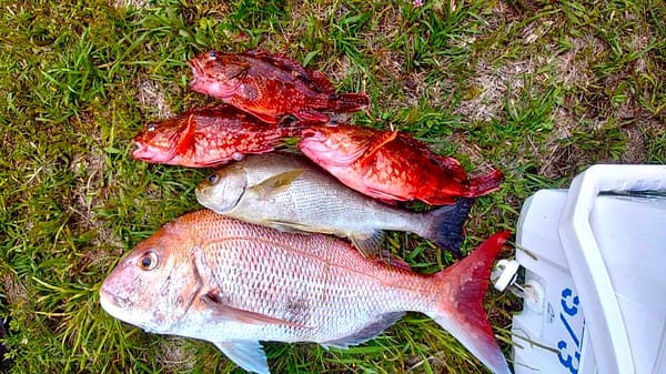 その他、タイラバで真鯛、アカハタなどが釣れました(^^) ・タックル ロッド:一誠海太郎 碧ライトゲームオフショア2 リール:シマノ 22ステラ3000MHG ライン:PE0.8 リーダー:4号 ルアー:メタルマジックTG40g(ピンク)