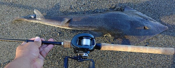 〇8/7(水)「方財サーフ」 マゴチが食べたくて方財サーフへ、マゴチは釣れず・・ ・ 〇タックル ロッド:ゼスタランウェイXR11ft リール:19ステラSW5000XG ライン:PE1.5号、リーダー4号 ルアー:スタッガーオリジナル4インチ(ブラック)
